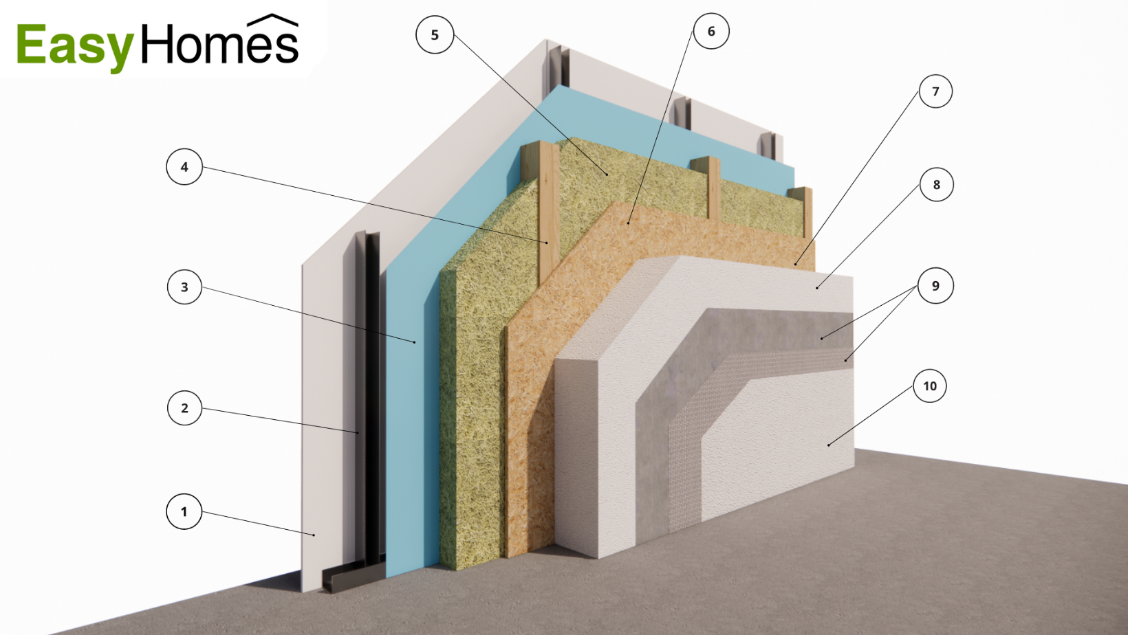 8. Fassadenstärke aus Polystyrol EPS F 100 – 200 mm, Teil eines WDV-Systems