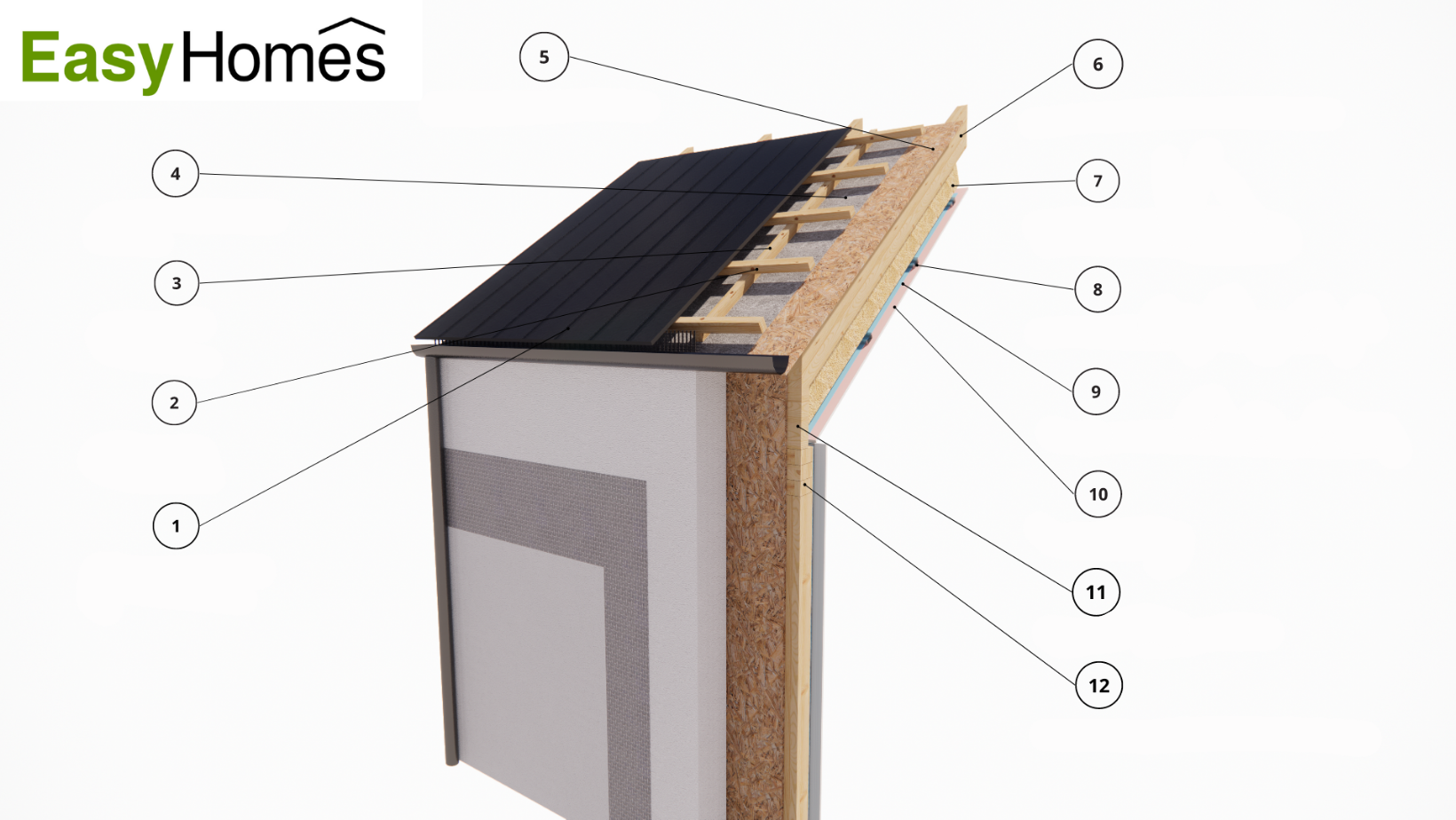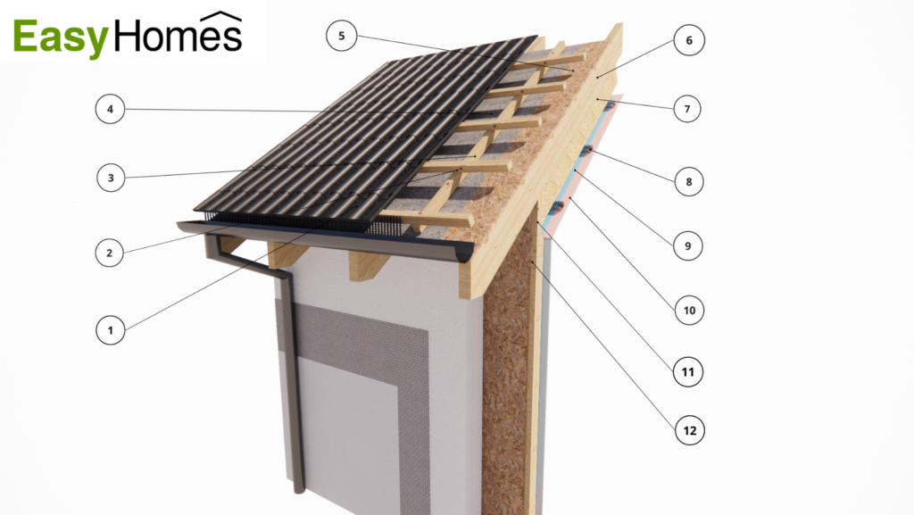 Diffusionsgeschlossene Konstruktion von Dach, Wänden, Decken und Boden