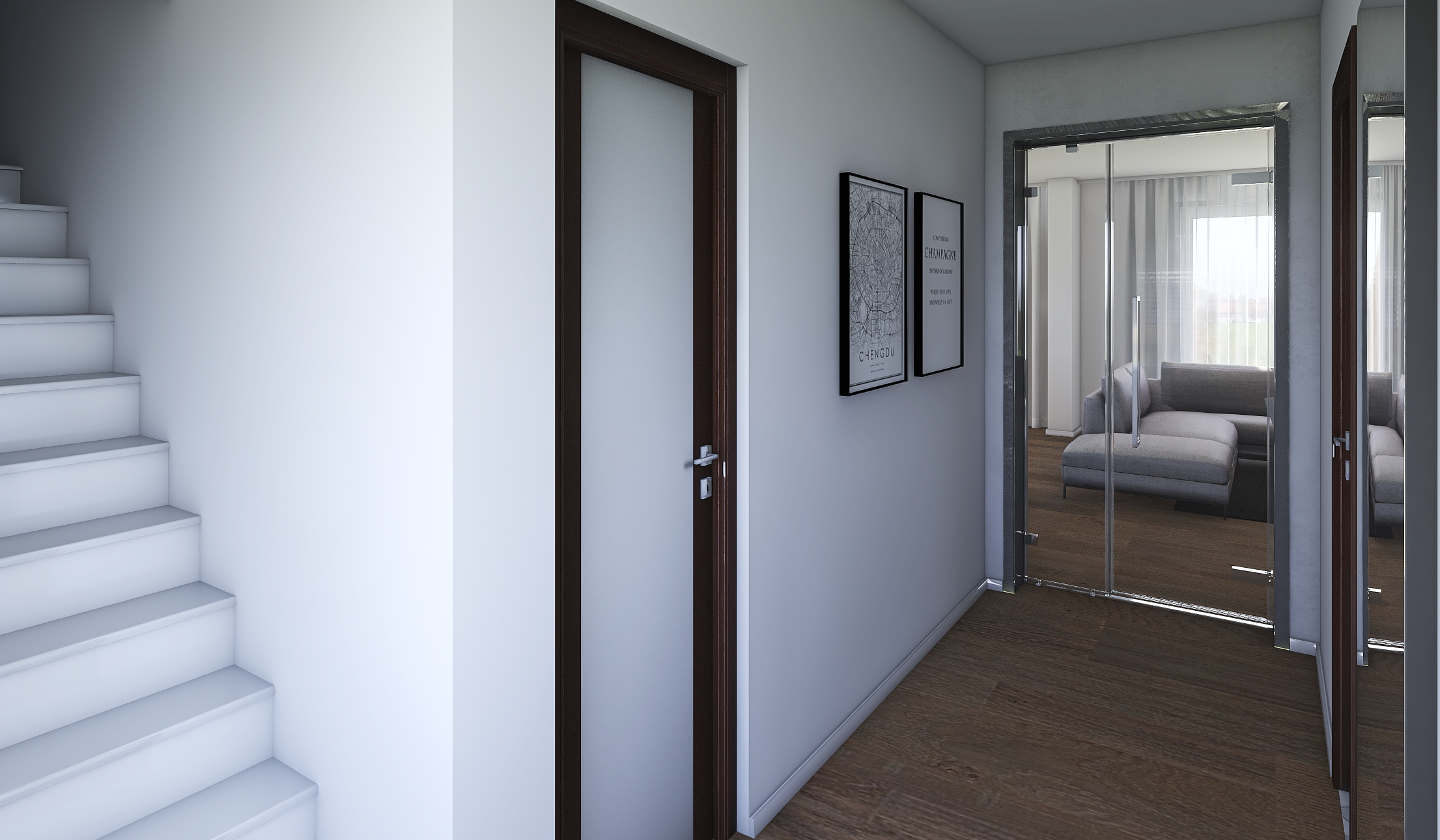 - Sockelleisten (PVC mit Kabelkanal) und Übergangsleisten