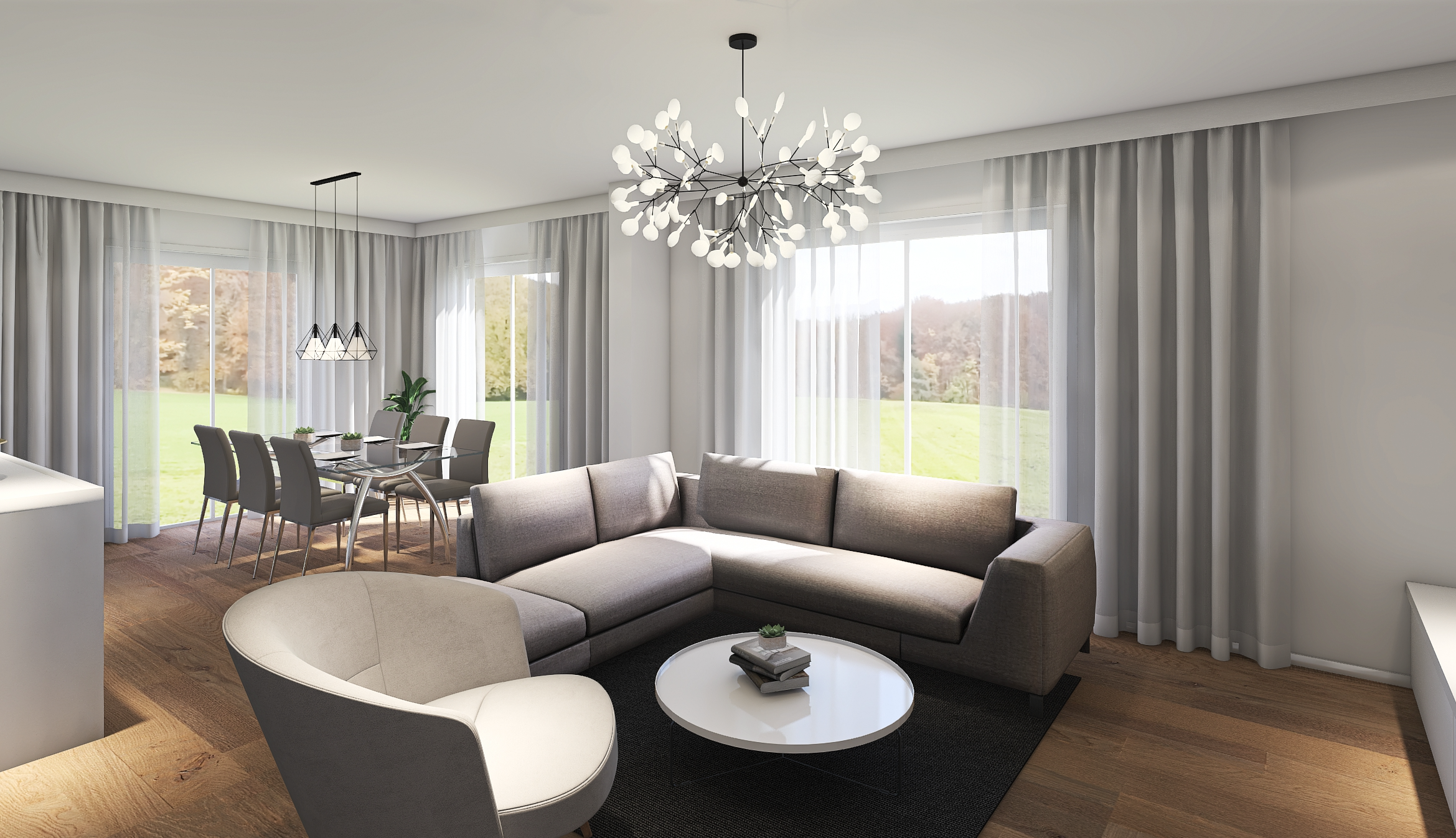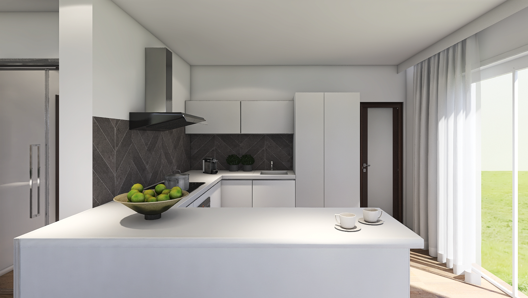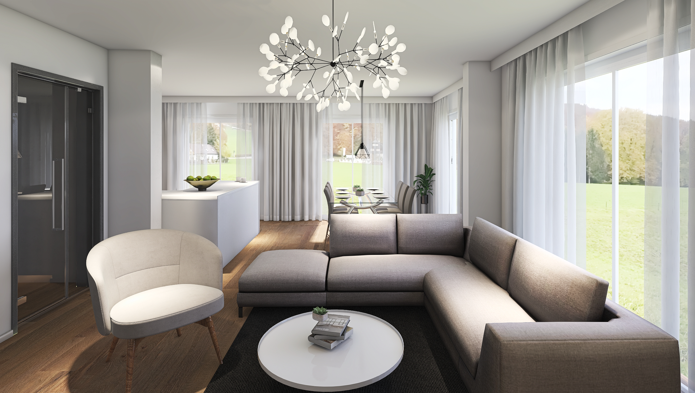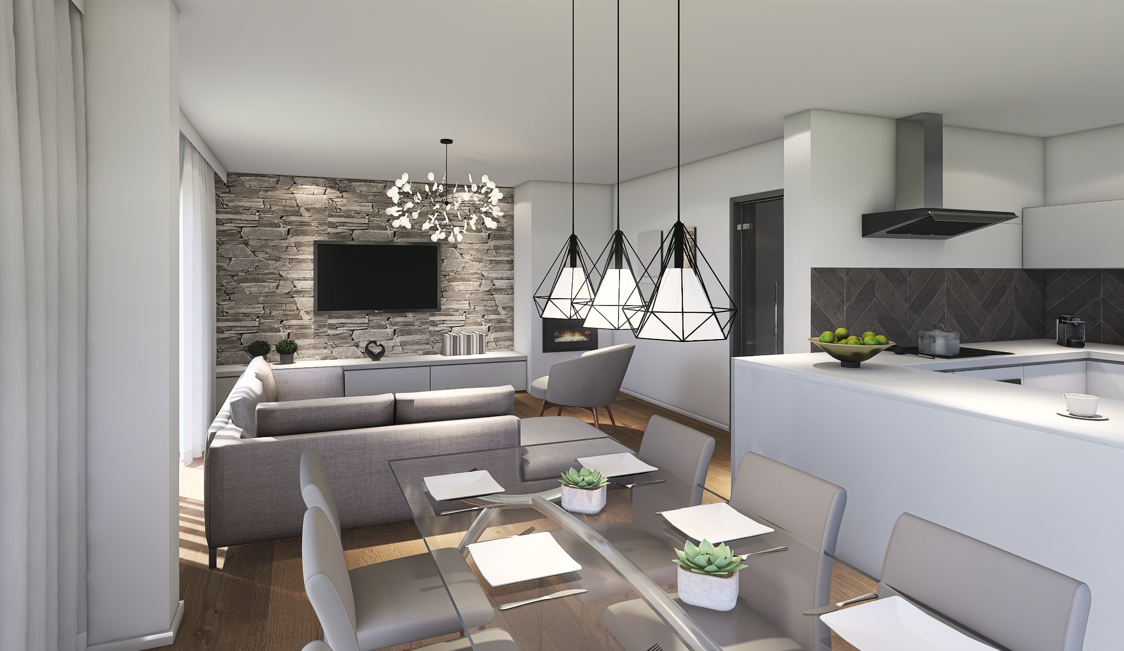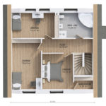 Das zweistöckige Holzhaus Easy 90 ist ein sehr effizient gestaltetes Haus mit großem Wohnzimmer mit offenem Küchenbereich, Bad und Speisekammer im Erdgeschoß und 3 Zimmer mit Bad im Obergeschoß und eignet sich gut für eine Familie mit 3 bis 4 Personen.