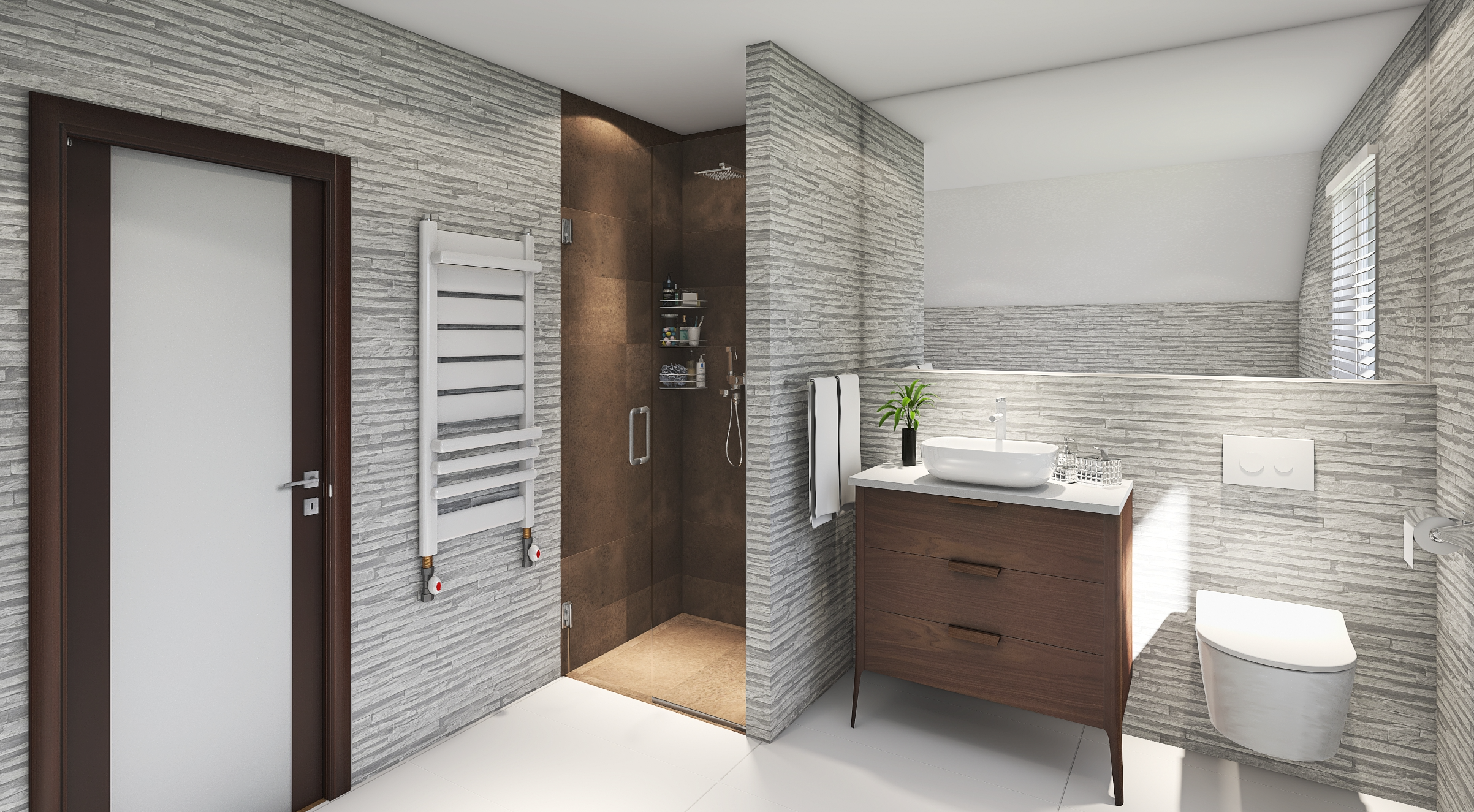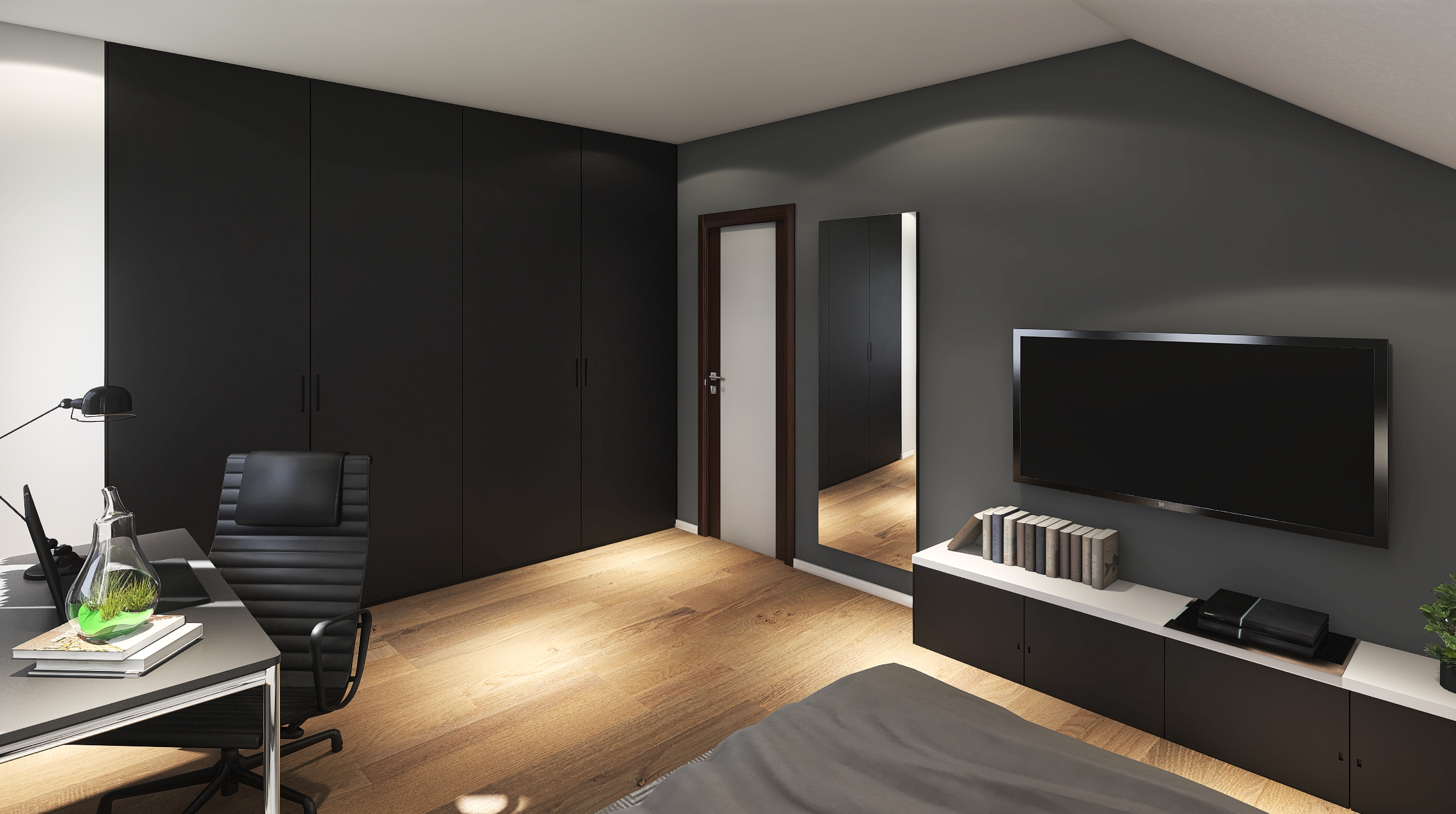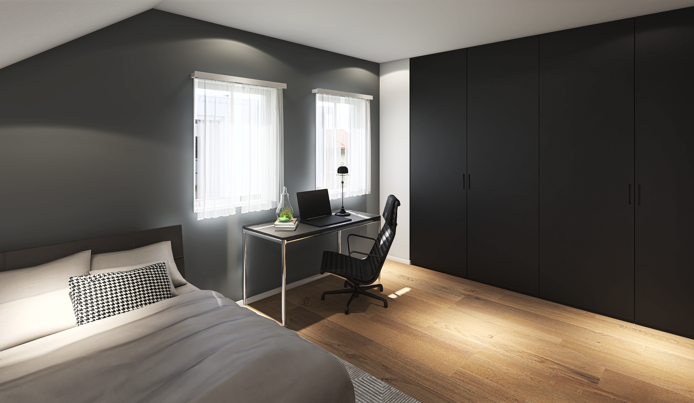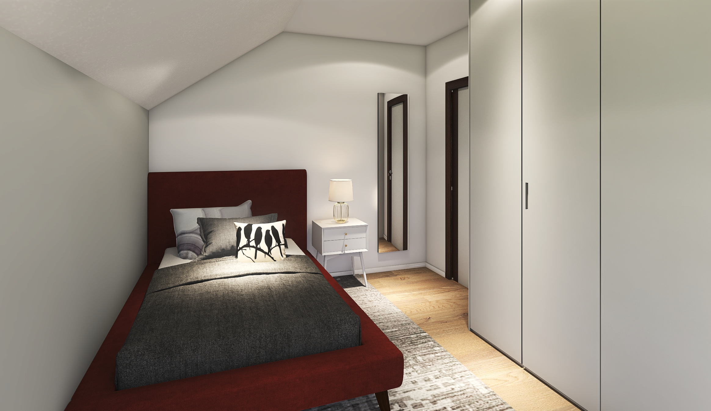 Das zweistöckige Holzhaus Easy 90 ist ein sehr effizient gestaltetes Haus mit großem Wohnzimmer mit offenem Küchenbereich, Bad und Speisekammer im Erdgeschoß und 3 Zimmer mit Bad im Obergeschoß und eignet sich gut für eine Familie mit 3 bis 4 Personen.
