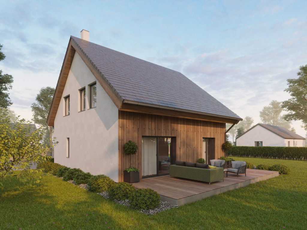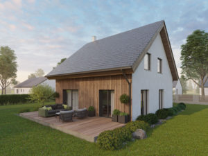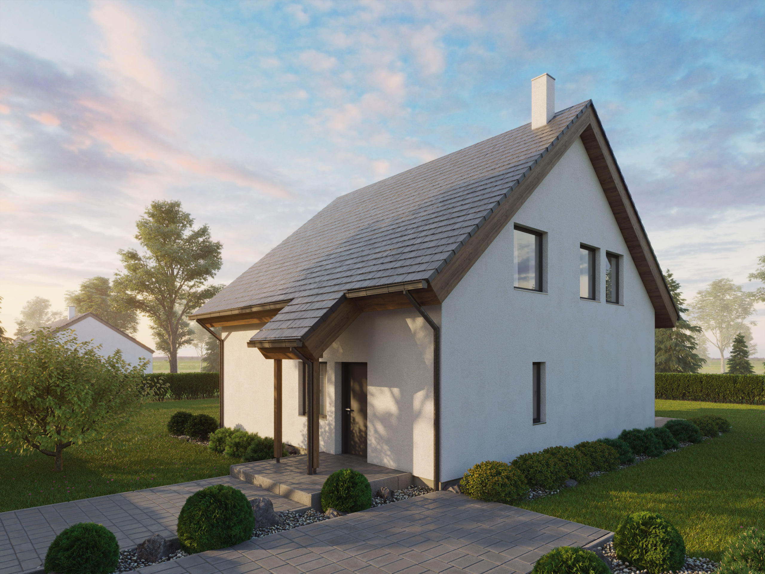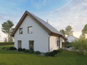 Durch den kompakte verbaute Fläche mit unter 100m² eignet sich dieses Hausmodell sehr gut für kleinere Grundstücke.