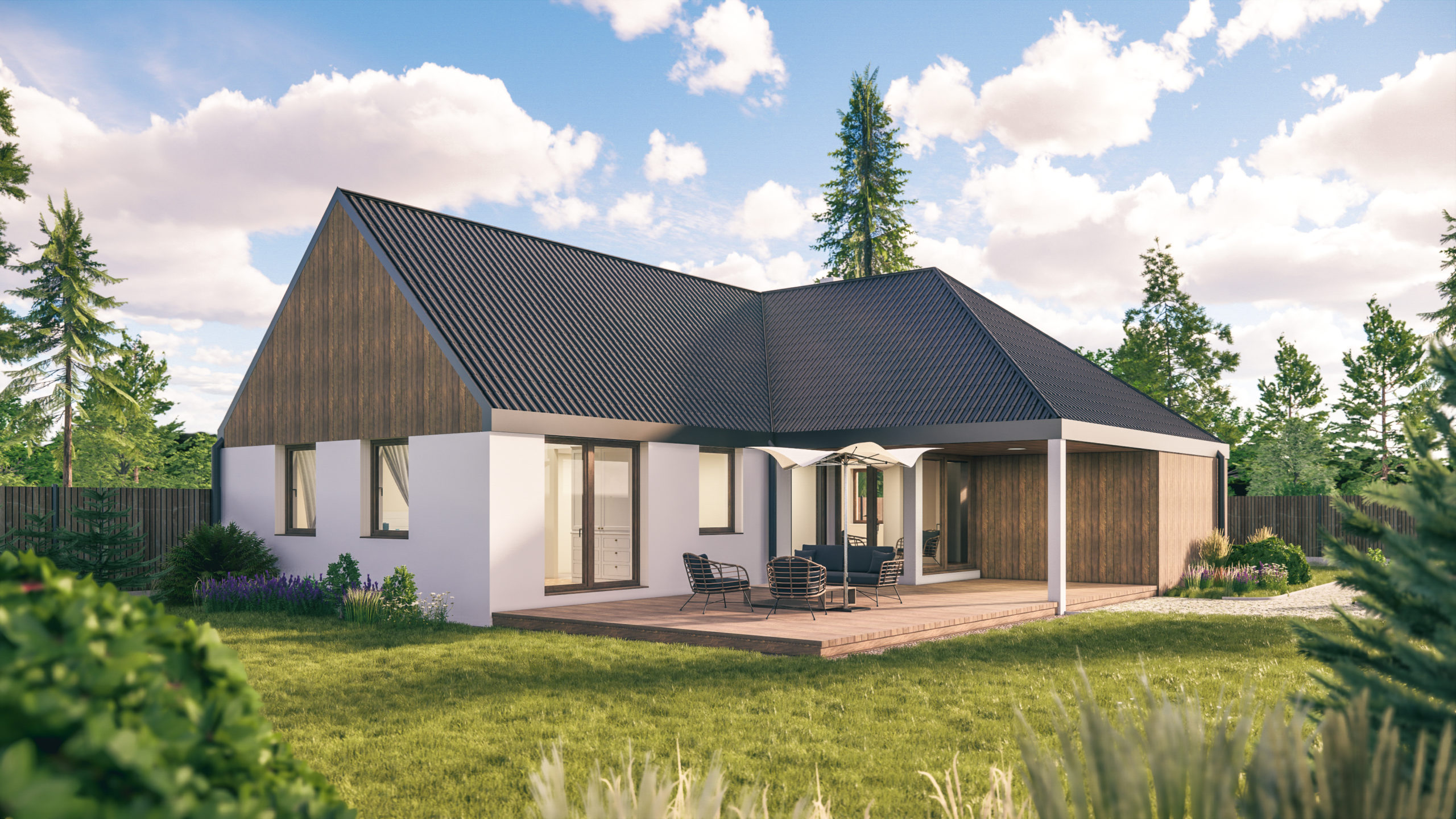 Das Holzhaus SN Easy 145 ist die größte Variante der neuen Hausserie „SN“, welche speziell für den ländlichen Raum konzipiert wurde – als „modernes Bauernhaus“ gestaltet bietet es mit 3 Schlafzimmern und zusätzlichem Wohnzimmer mit offener Küche genügend Platz für eine große Familie und ist mit seinem Grundriss eine preisgünstige Lösung für Wochenendhäuser und/oder Zweitwohnsitze in der Natur aber auch als Hauptwohnsitz bestens geeignet.