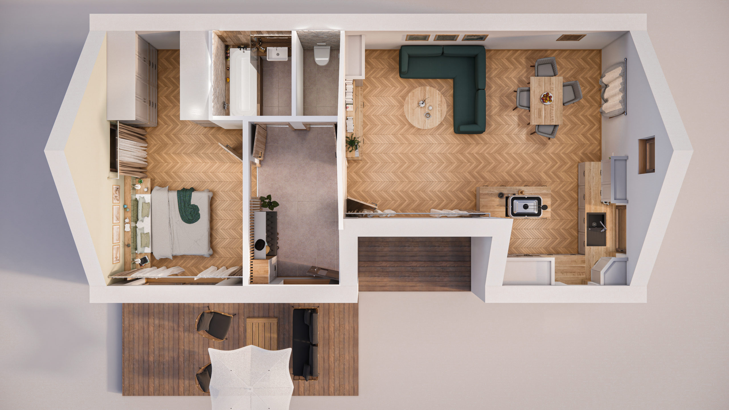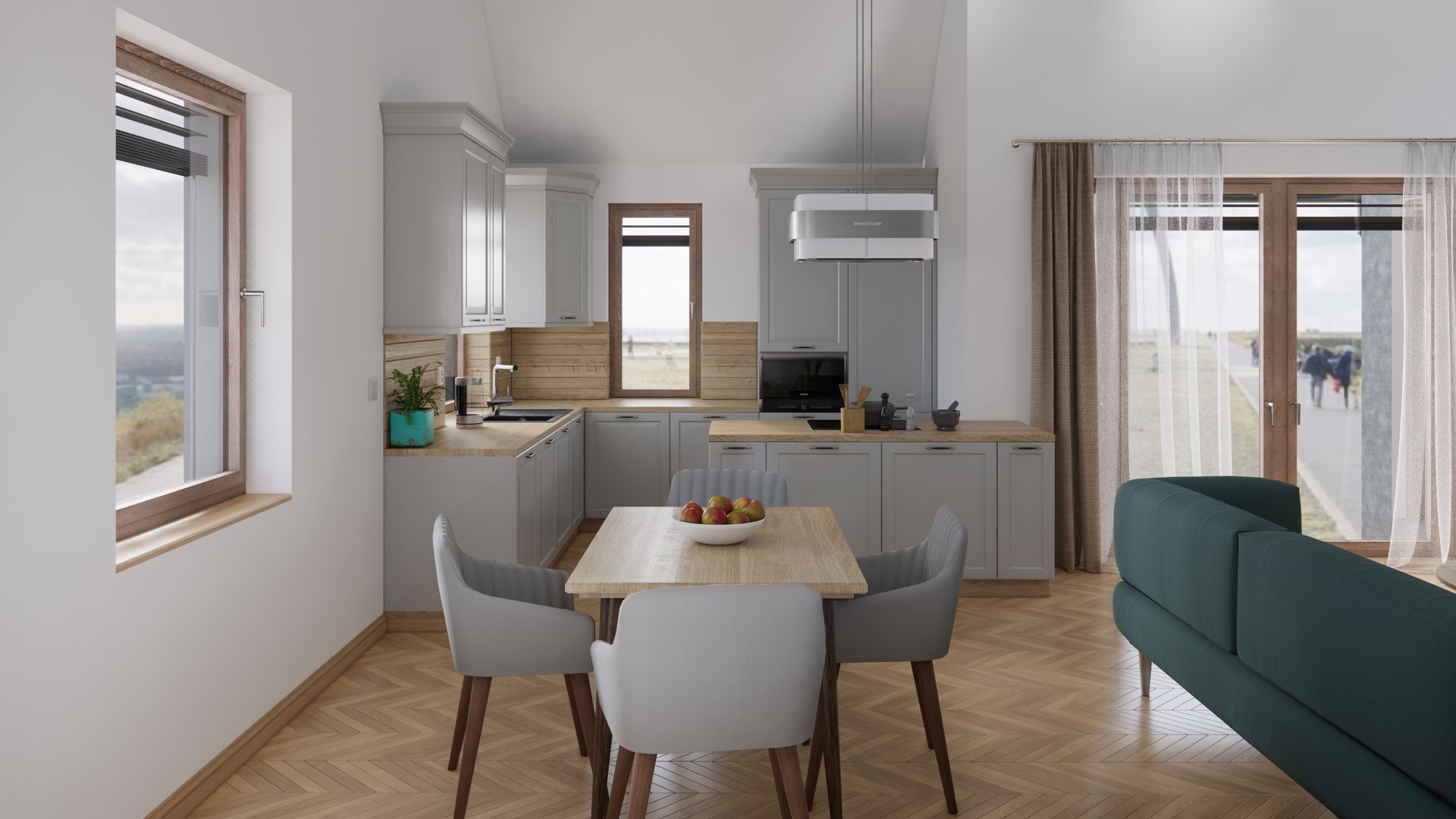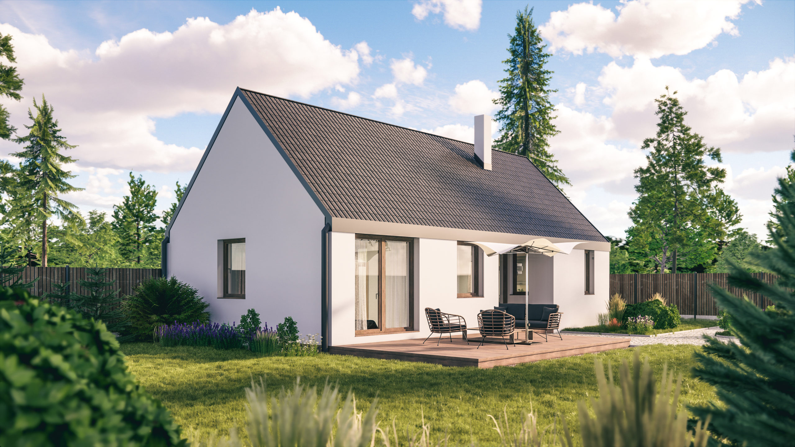 Das Holzhaus SN Easy 89 ist die kleinste Variante der neuen Hausserie „SN“, welche speziell für den ländlichen Raum konzipiert wurde – als „modernes Bauernhaus“ gestaltet bietet es mit 1 Schlafzimmern und zusätzlichem Wohnzimmer mit offener Küche genügend Platz für ein Pärchen und ist mit seinem Grundriss eine preisgünstige Lösung für Wochenendhäuser und/oder Zweitwohnsitze.