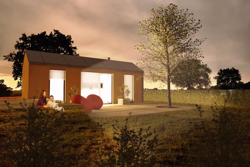 Raumaufteilung: Das Fertighaus Easy24 bietet eine Wohnküche und ein Bad.