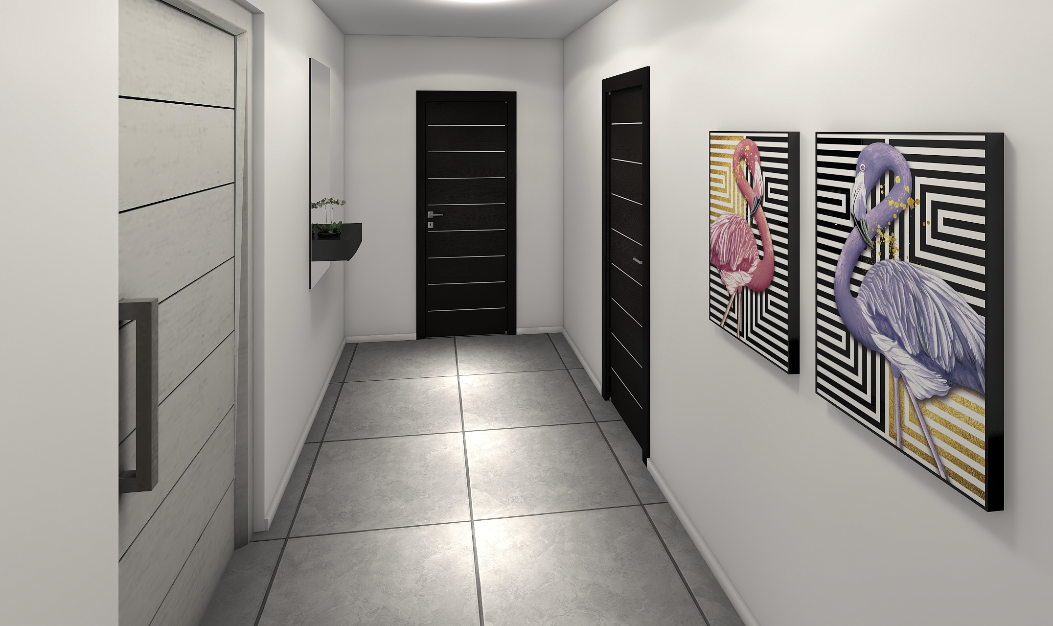- Eingangstür in weißer Farbe (Kunststofftür)