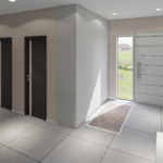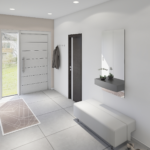 - Eingangstür in weißer Farbe (Kunststofftür)
