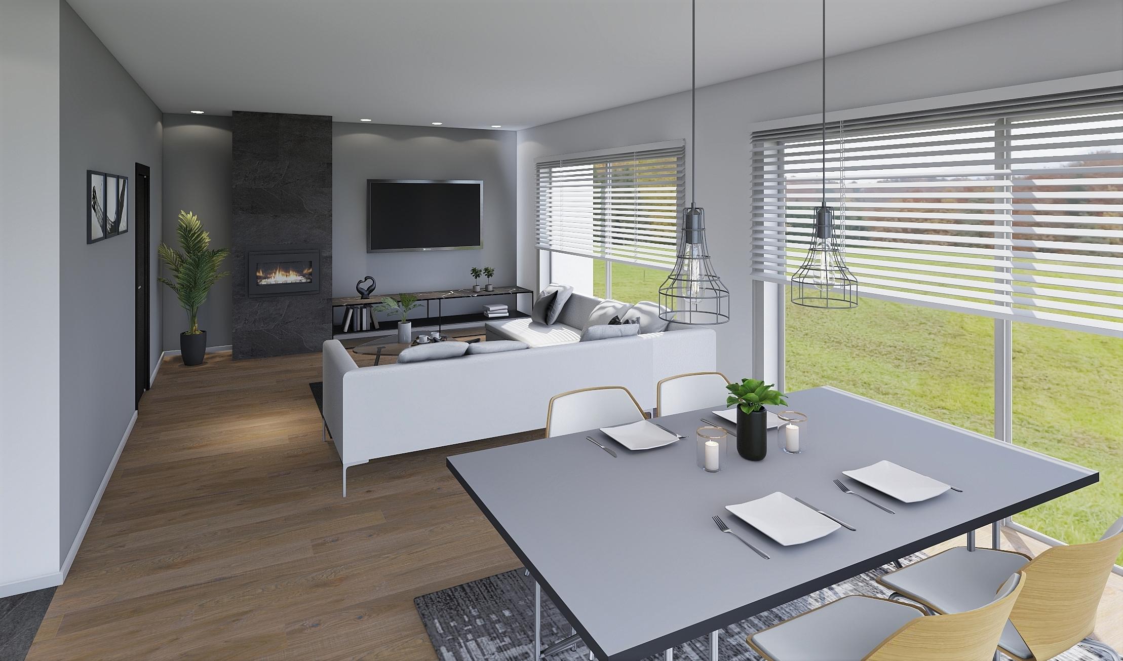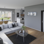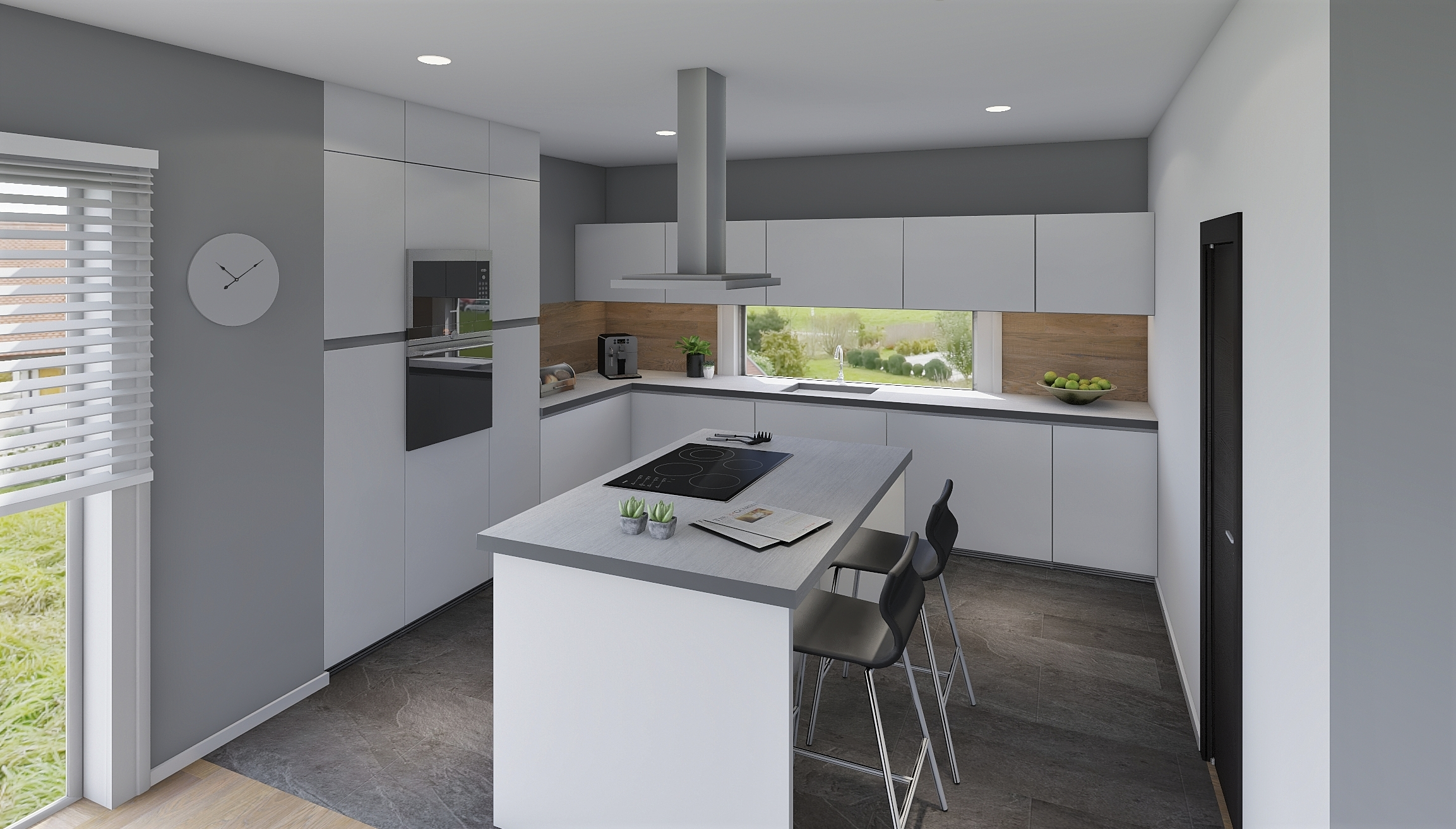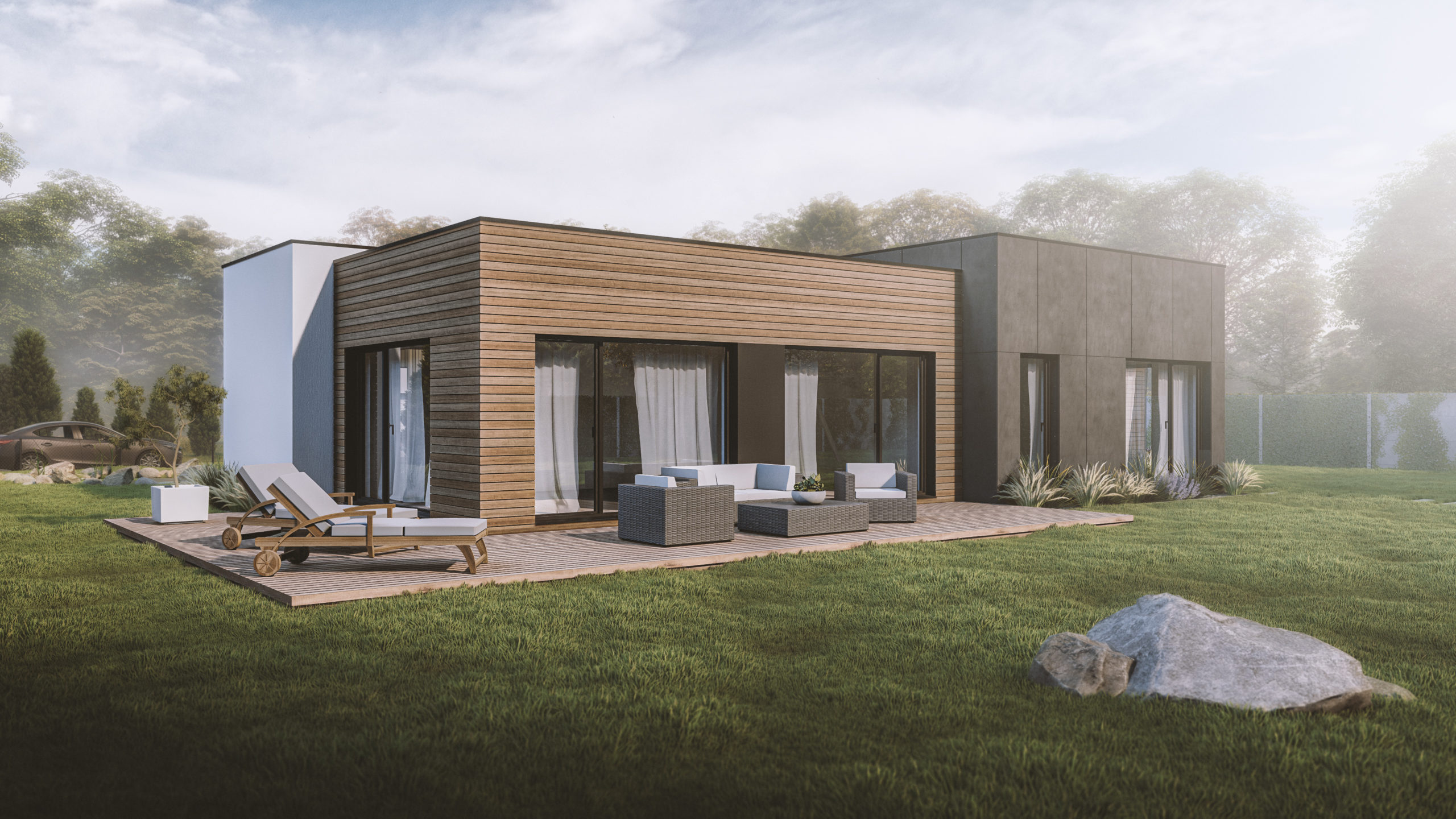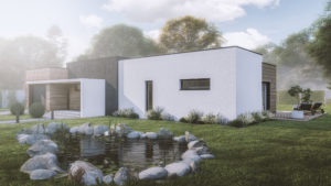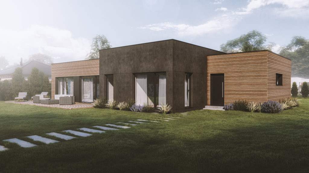 Unser stylischer heller Bungalow Easy 150 mit großen Fensterflächen kann mit 3 Zimmer plus Garage oder mit 4 Zimmer errichtet werden.