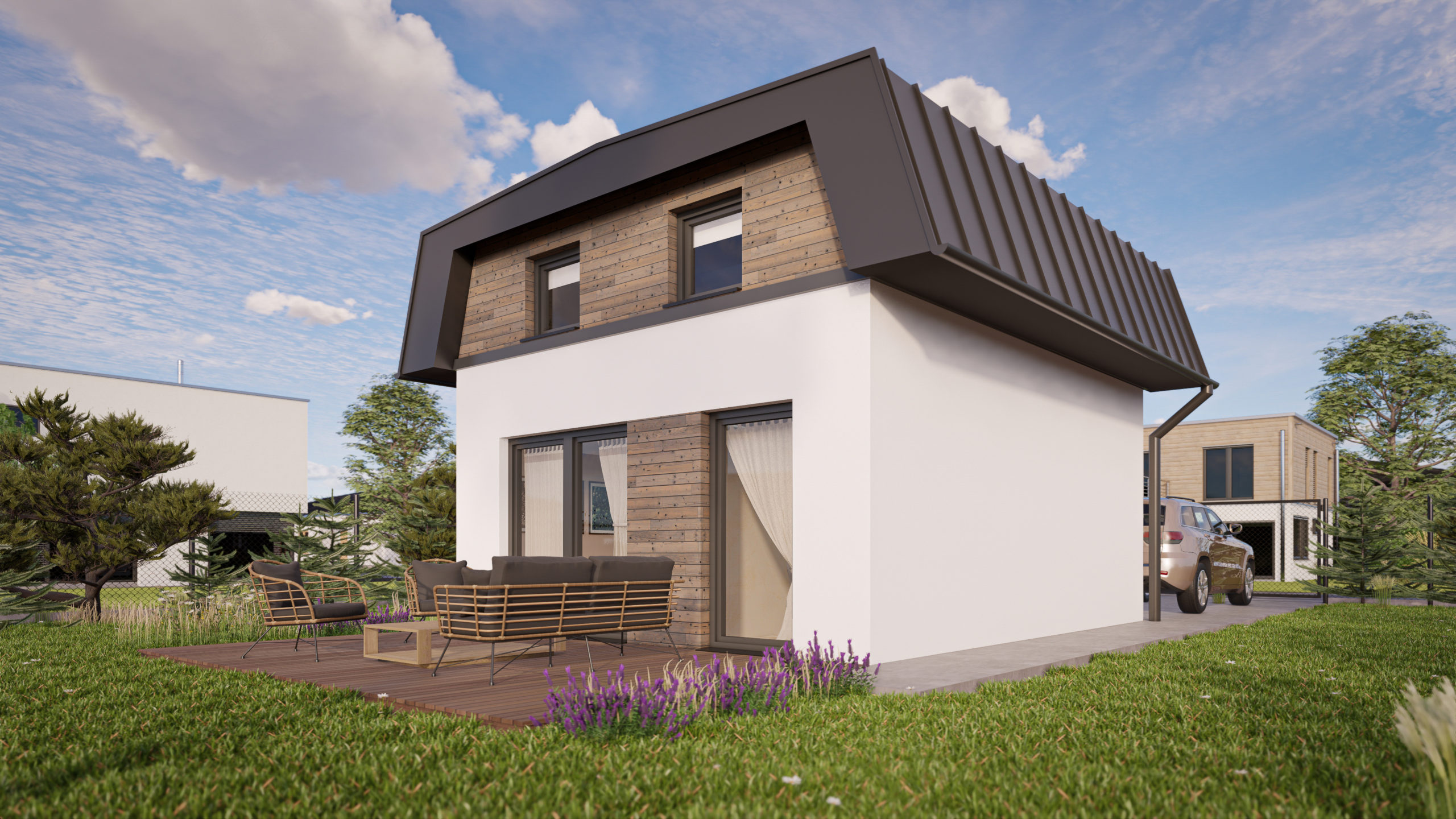 - Holzverkleidung der Fassade