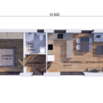 Vergrößerter Grundriss des beliebtesten Holzhauses Easy 48. Es gibt die Möglichkeit der Grundrissgestaltung mit einem Zimmer mit Wohnküche oder 2 Zimmer mit Wohnküche.