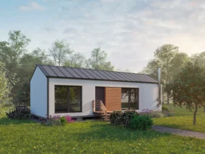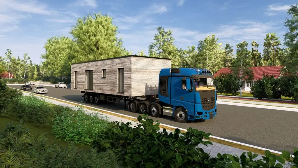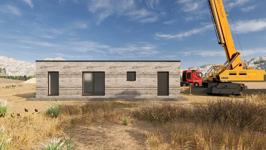 Das Fertighaus Easy 53 ist unser größtes transportfähiges Holzhaus im Falle eines zugänglichen Grundstücks. Sofern es nicht transportiert und mit einem Kran abgesetzt werden kann, erfolgt die Errichtung vor Ort auf dem Grundstück des Bauherrn.