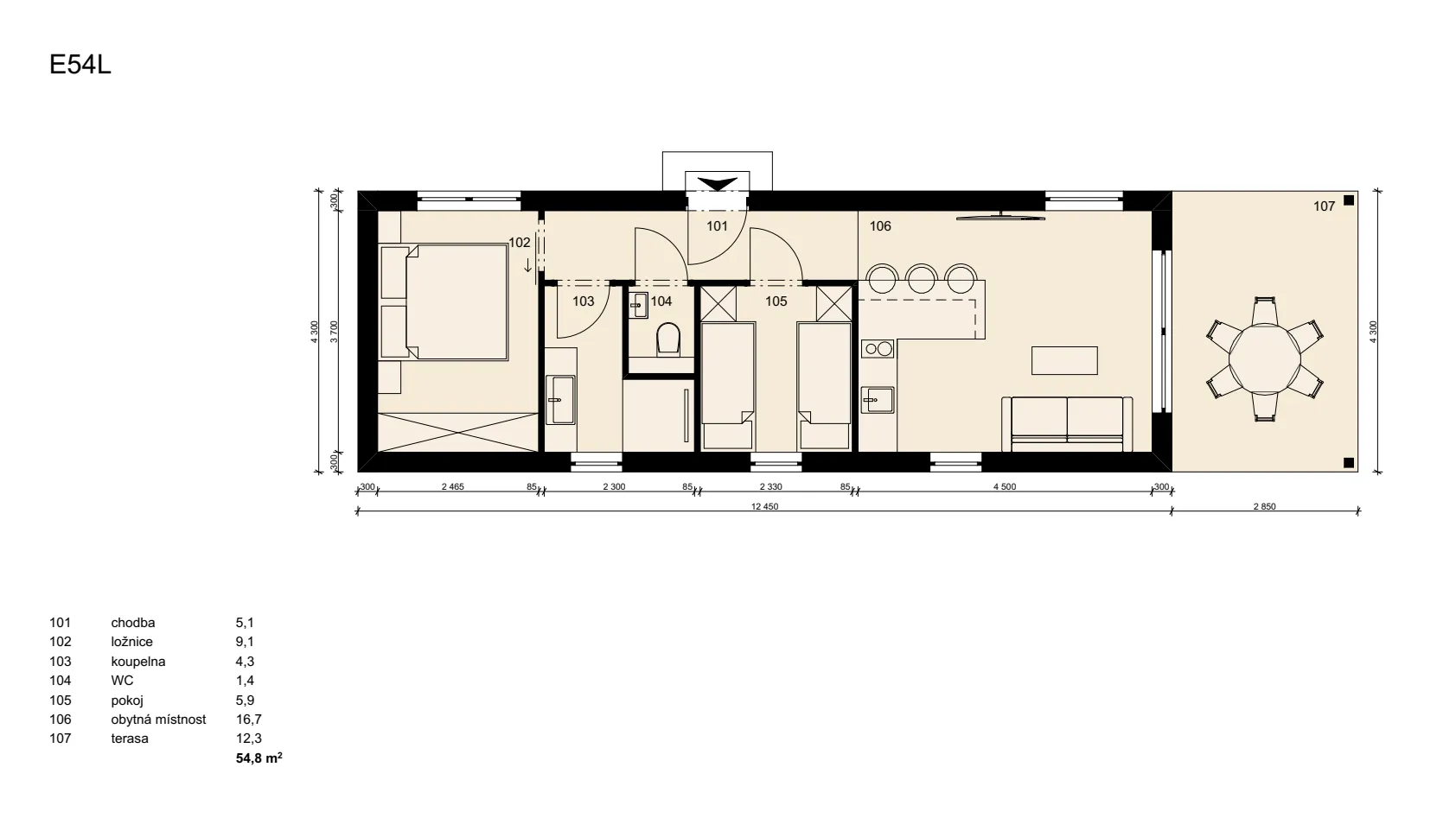 Aufteilung: 3+kk (Wohnbereich mit Küchenvorbereitung, 2 Zimmer)