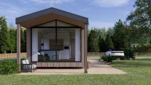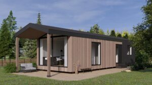 Die Häuser sind vollständig vorbereitet und transportbereit. Die Küchenzeile kann optional mit bezogen werden, ist jedoch nicht im Kaufpreis enthalten. In den Visualisierungen dargestellte Elemente wie Whirlpool oder Photovoltaikanlage sind nicht Bestandteil des Angebots.